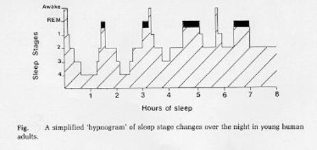 We experience four or five sleep cycles every night, each cycle lasting approximately 90 minutes, (see diagram opposite). The amount of